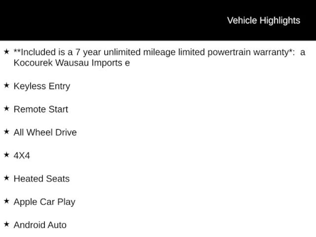 **Included is a 7 year unlimited mileage limited powertrain warranty*: a Kocourek Wausau Imports e, Keyless Entry, Remote Start, All Wheel Drive, 4X4, Heated Seats, Apple Car Play, Android Auto, Bluetooth, Portable Audio Connection, Backup Camera, Multi-zone Climate Control, CloudTex & Cloth Seating Surfaces, Front Bucket Seats, Front Center Armrest, Heated door mirrors, Heated Front Bucket Seats, Heated front seats, Power door mirrors, Power driver seat, Power steering, Power windows, Rain sensing wipers, Rear window wiper, Remote keyless entry, Split folding rear seat, Steering wheel mounted audio controls, Variably intermittent wipers, Wheels: 18" 2-Tone Machined Alloy, 4-Wheel Disc Brakes, 6 Speakers, ABS brakes, Active Blind Spot Monitor, Air Conditioning, Alloy wheels, AM/FM radio: SiriusXM with 360L, Auto High-beam Headlights, Automatic temperature control, Brake assist, Bumpers: body-color, Compass, Delay-off headlights, Driver door bin, Driver vanity mirror, Dual front impact airbags, Dual front side impact airbags, Electronic Stability Control, Emergency communication system: VW Car-Net Safe & Secure 5-year, Exterior Parking Camera Rear, Four wheel independent suspension, Front anti-roll bar, Front dual zone A/C, Front reading lights, Front Strut Rear Multi-Link Suspension, Fully automatic headlights, Heated steering wheel, Illuminated entry, Leather Shift Knob, Low tire pressure warning, Occupant sensing airbag, Outside temperature display, Overhead airbag, Overhead console, Panic alarm, Passenger door bin, Passenger vanity mirror, Radio data system, Radio: MIB3 Composition Media AM/FM/HD, Rear anti-roll bar, Rear seat center armrest, Rear window defroster, Security system, Speed control, Speed-sensing steering, Spoiler, Tachometer, Telescoping steering wheel, Tilt steering wheel, Traction control, Trip computer, CloudTex & Cloth Seating Surfaces, Front Bucket Seats, Front Center Armrest, Heated door mirrors, Heated Front Bucket Seats, Heated front seats, Power door mirrors, Power driver seat, Power steering, Power windows, Rain sensing wipers, Rear window wiper, Remote keyless entry, Split folding rear seat, Steering wheel mounted audio controls, Variably intermittent wipers, Wheels: 18" 2-Tone Machined Alloy.