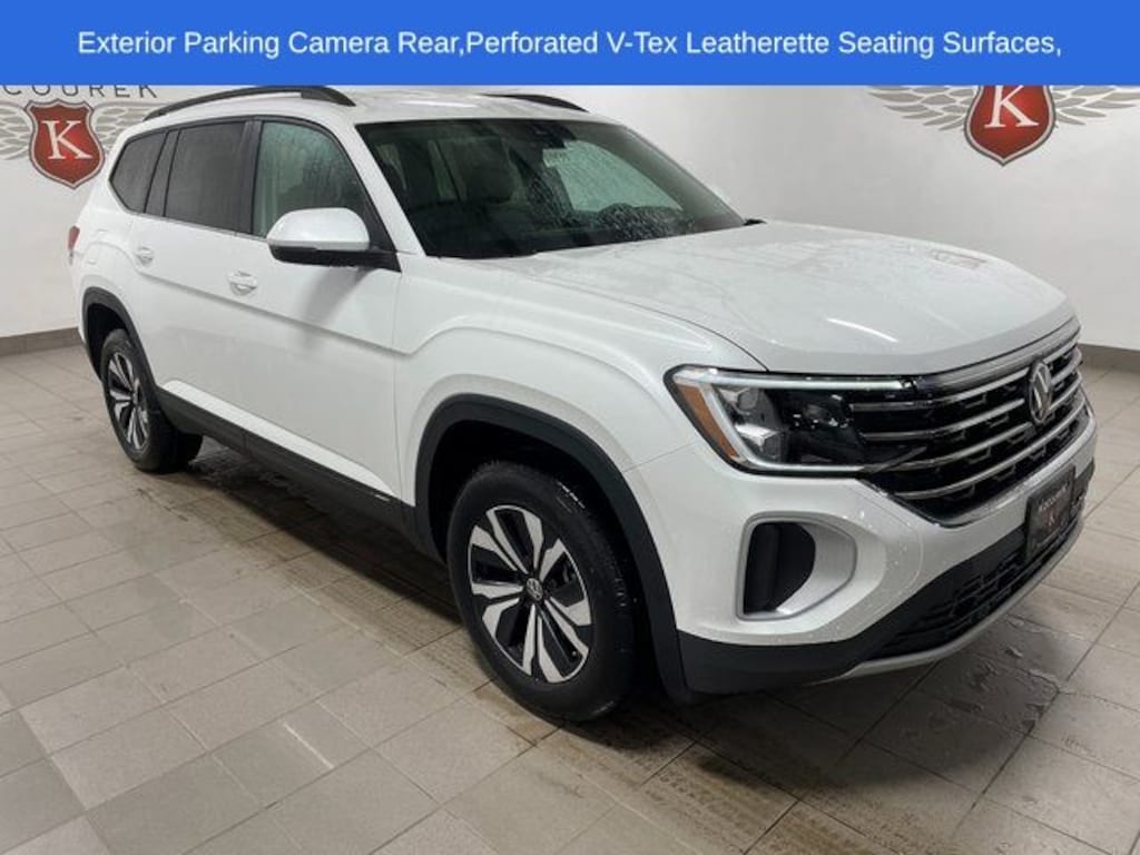 Atlas 2.0T SE, 4D Sport Utility, 2.0L TSI, 8-Speed Automatic with Tiptronic, AWD, opal white pearl, Titan Black Artificial Leather, Exterior Parking Camera Rear, Heated front seats, Perforated V-Tex Leatherette Seating Surfaces, Rain sensing wipers, Ventilated front seats, Wheels: 18" 2-Tone Machined Alloy, 3rd row seats: split-bench, 4-Wheel Disc Brakes, 6 Speakers, ABS brakes, Air Conditioning, Alloy wheels, AM/FM radio: SiriusXM with 360L, Auto High-beam Headlights, Auto-dimming Rear-View mirror, Automatic temperature control, Brake assist, Bumpers: body-color, Delay-off headlights, Driver door bin, Driver vanity mirror, Dual front impact airbags, Dual front side impact airbags, Electronic Stability Control, Emergency communication system: VW Car-Net Safe & Secure 5-year, Four wheel independent suspension, Front anti-roll bar, Front Bucket Seats, Front Center Armrest, Front dual zone A/C, Front fog lights, Front reading lights, Fully automatic headlights, Heated & Actively Ventilated Front Bucket Seats, Heated door mirrors, Heated steering wheel, Illuminated entry, Low tire pressure warning, Occupant sensing airbag, Outside temperature display, Overhead airbag, Overhead console, Panic alarm, Passenger door bin, Passenger vanity mirror, Power door mirrors, Power driver seat, Power steering, Power windows, Radio data system, Radio: MIB3 Composition Media, Rear air conditioning, Rear anti-roll bar, Rear reading lights, Rear seat center armrest, Rear window defroster, Rear window wiper, Remote keyless entry, Security system, Speed control, Speed-sensing steering, Split folding rear seat, Spoiler, Steering wheel mounted audio controls, Tachometer, Telescoping steering wheel, Tilt steering wheel, Traction control, Trip computer, Turn signal indicator mirrors, Variably intermittent wipers, VW Care, Atlas 2.0T SE, 4D Sport Utility, 2.0L TSI, 8-Speed Automatic with Tiptronic, AWD, opal white pearl, Titan Black Artificial Leather, Exterior Parking Camera Rear, Heated front seats, Perforated V-Tex Leatherette Seating Surfaces, Rain sensing wipers, Ventilated front seats, Wheels: 18" 2-Tone Machined Alloy.