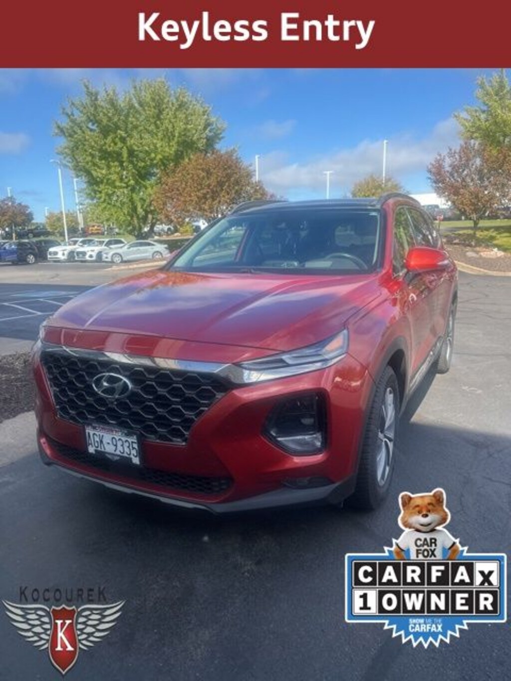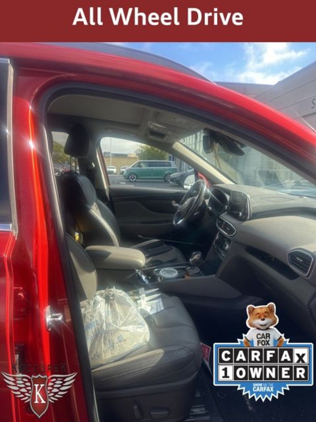 Keyless Entry, Remote Start, All Wheel Drive, 4X4, Heated Seats, Heated Steering Wheel, Leather Seats, Apple Car Play, Android Auto, Heads Up Display, Navigation system, Moonroof, Bluetooth, Santa Fe Limited, 4D Sport Utility, 2.4L I4 DGI DOHC 16V LEV3-ULEV70 185hp, 8-Speed Automatic with SHIFTRONIC, AWD, Lava Orange, Gray Leather, 12 Speakers, 18" x 7.5J Alloy Wheels, 4-Wheel Disc Brakes, ABS brakes, Air Conditioning, Alloy wheels, AM/FM radio: SiriusXM, Apple CarPlay & Android Auto, Automatic temperature control, Axle Ratio 4.081, Cargo Package, Compass, Driver door bin, Driver vanity mirror, Dual front impact airbags, Dual front side impact airbags, Emergency communication system, Four wheel independent suspension, Front anti-roll bar, Front Bucket Seats, Front Center Armrest, Front dual zone A/C, Fully automatic headlights, Garage door transmitter: HomeLink, Heads-Up Display, Heated & Ventilated Front Bucket Seats, Heated front seats, Heated rear seats, Heated steering wheel, Illuminated entry, Leather Seating Surface, Leather Shift Knob, Leather steering wheel, Low tire pressure warning, Memory seat, Navigation System, Occupant sensing airbag, Option Group 01, Outside temperature display, Overhead airbag, Overhead console, Power driver seat, Power Liftgate, Power moonroof, Power passenger seat, Power steering, Power windows, Radio: Infinity Premium AM/FM/MP3 Display Audio, Rain sensing wipers, Rear anti-roll bar, Rear seat center armrest, Rear window defroster, Rear window wiper, Remote keyless entry, Speed control, Speed-sensing steering, Steering wheel mounted audio controls, Tachometer, Telescoping steering wheel, Tilt steering wheel, Traction control, Trip computer, Turn signal indicator mirrors, Variably intermittent wipers, Ventilated front seats, Wheel Locks, Auto High-beam Headlights, Auto-dimming Rear-View mirror, Brake assist, Bumper Applique, Bumpers: body-color, Delay-off headlights, Electronic Stability Control, Front fog lights, Front reading lights, Heated door mirrors, Panic alarm, Passenger door bin, Passenger vanity mirror, Power door mirrors, Security system, Split folding rear seat, Spoiler, Santa Fe Limited, 4D Sport Utility, 2.4L I4 DGI DOHC 16V LEV3-ULEV70 185hp, 8-Speed Automatic with SHIFTRONIC, AWD, Lava Orange, Gray Leather, 12 Speakers, 18" x 7.5J Alloy Wheels, 4-Wheel Disc Brakes, ABS brakes, Air Conditioning, Alloy wheels, AM/FM radio: SiriusXM, Apple CarPlay & Android Auto, Automatic temperature control, Axle Ratio 4.081, Cargo Package, Compass, Driver door bin, Driver vanity mirror, Dual front impact airbags, Dual front side impact airbags, Emergency communication system, Four wheel independent suspension, Front anti-roll bar, Front Bucket Seats, Front Center Armrest, Front dual zone A/C, Fully automatic headlights, Garage door transmitter: HomeLink, Heads-Up Display, Heated & Ventilated Front Bucket Seats, Heated front seats, Heated rear seats, Heated steering wheel, Illuminated entry, Leather Seating Surface, Leather Shift Knob, Leather steering wheel, Low tire pressure warning, Memory seat, Navigation System, Occupant sensing airbag, Option Group 01, Outside temperature display, Overhead airbag, Overhead console, Power driver seat, Power Liftgate, Power moonroof, Power passenger seat, Power steering, Power windows, Radio: Infinity Premium AM/FM/MP3 Display Audio, Rain sensing wipers, Rear anti-roll bar, Rear seat center armrest, Rear window defroster, Rear window wiper, Remote keyless entry, Speed control, Speed-sensing steering, Steering wheel mounted audio controls, Tachometer, Telescoping steering wheel, Tilt steering wheel, Traction control, Trip computer, Turn signal indicator mirrors, Variably intermittent wipers, Ventilated front seats, Wheel Locks.