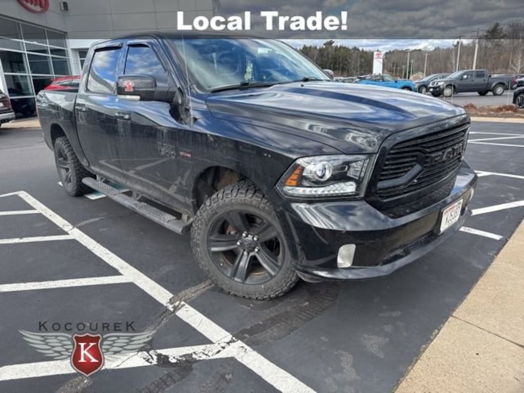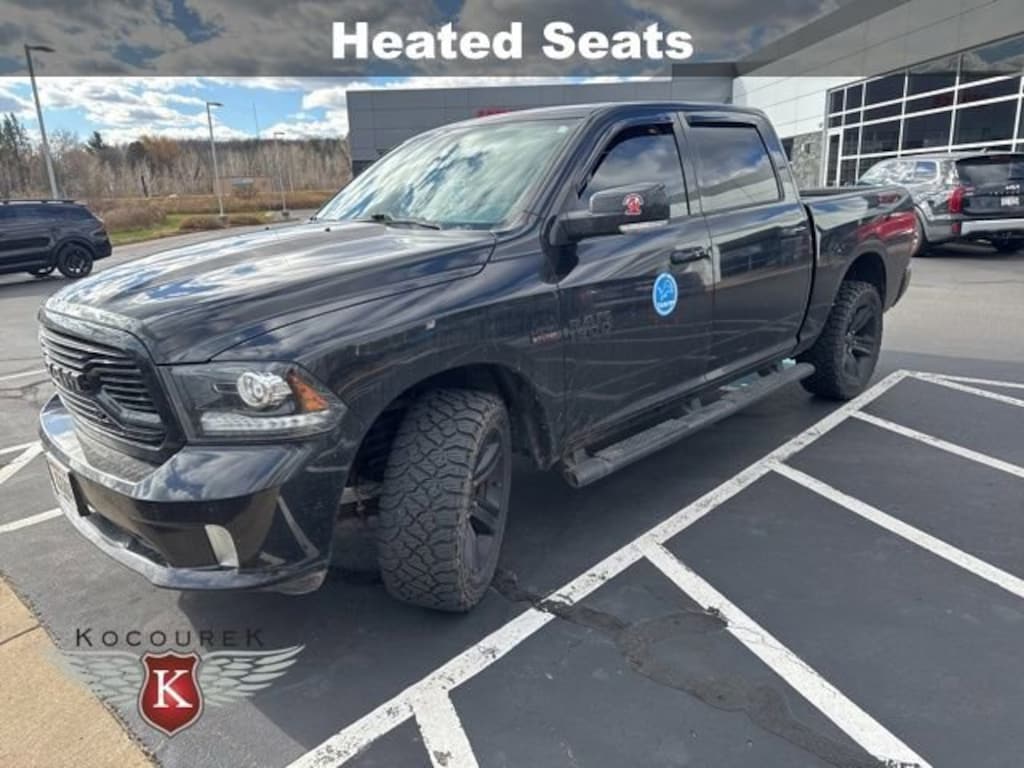 Local Trade!, Heated Seats, 4X4, Bluetooth, Backup Camera, Apple CarPlay/Android Auto, Dual Rear Exhaust w/Bright Tips, Heated door mirrors, Power driver seat, Quick Order Package 27L Sport, 1-Yr SiriusXM Guardian Trial, 115V Auxiliary Power Outlet, 20" x 9" Polished Aluminum Wheels, 4-Wheel Disc Brakes, 4x4 Flat Black Badge, 6 Speakers, 8.4" Touchscreen Display, ABS brakes, Active Grille Shutters, Adjustable pedals, Air Conditioning, Alloy wheels, AM/FM radio: SiriusXM, Apple CarPlay, Audio Jack Input for Mobile Devices, Auto-dimming door mirrors, Auto-dimming Rear-View mirror, Automatic temperature control, Black Exterior Truck Badging, Black Ram Head Tailgate Badge, Brake assist, Bucket Seats, Bumpers: body-color, Center Hub, Cloth Bucket Seats, Compass, Delay-off headlights, Driver door bin, Driver vanity mirror, Dual front impact airbags, Dual front side impact airbags, Electronic Shift, Electronic Stability Control, Emergency communication system: SiriusXM Guardian, Flat Black Ram 1500 Badge, Folding Flat Load Floor Storage, Front anti-roll bar, Front Bucket Seats, Front Center Armrest w/Storage, Front dual zone A/C, Front fog lights, Front reading lights, Front wheel independent suspension, Full Length Upgraded Floor Console, Fully automatic headlights, Garage door transmitter, Google Android Auto, GPS Antenna Input, HD Radio, Heated Front Seats, Heated front seats, Heated steering wheel, High Back Seats, Illuminated entry, Integrated Voice Command w/Bluetooth, Leather steering wheel, Low tire pressure warning, Media Hub (2 USB, AUX), Occupant sensing airbag, Outside temperature display, Overhead airbag, Overhead console, Panic alarm, ParkView Rear Back-Up Camera, Passenger door bin, Passenger vanity mirror, Power door mirrors, Power Lumbar Adjust, Power steering, Power windows, Radio data system, Radio: Uconnect 4C w/8.4" Display, Rear 60/40 Split Folding Seat, Rear anti-roll bar, Rear seat center armrest, Rear step bumper, Remote keyless entry, Remote USB Port, SiriusXM Satellite Radio, Speed control, Split folding rear seat, Steering wheel mounted audio controls, Tachometer, Tilt steering wheel, Tip Start, Traction control, Trip computer, Turn signal indicator mirrors, USB Host Flip, Variably intermittent wipers, Voltmeter, Wheels: 20" x 9" Semi-Gloss Black Aluminum, *Not all will qualify. See dealer for details., Apple CarPlay/Android Auto, Dual Rear Exhaust w/Bright Tips, Heated door mirrors, Power driver seat, Quick Order Package 27L Sport. Recent Arrival!