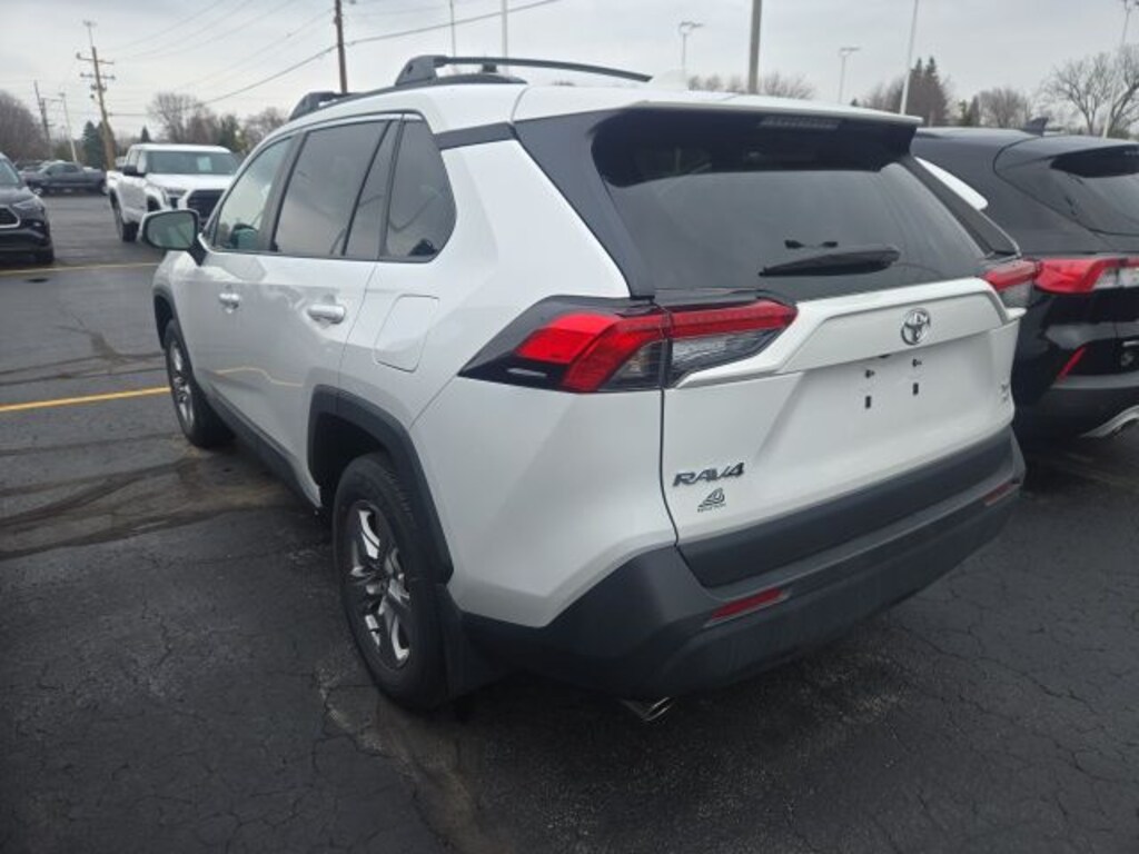 The RAV4 XLE's striking exterior in White is complemented by a host of premium features, including heated door mirrors, a power liftgate, and a rear spoiler, adding both style and convenience to your daily drives.